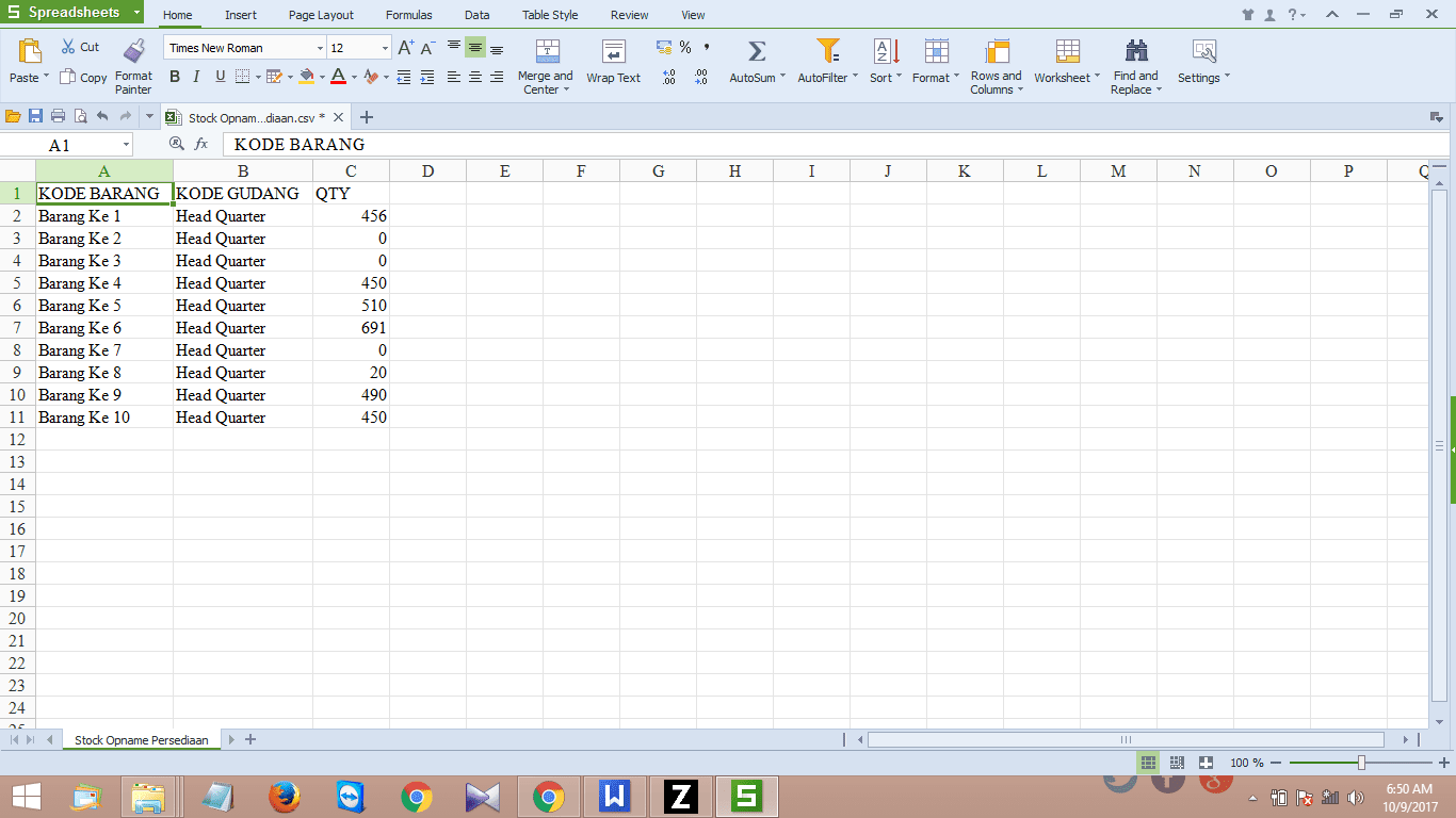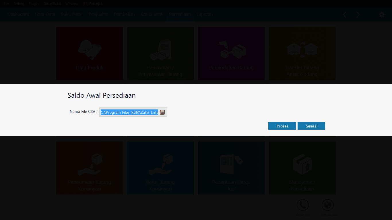 1. Pilih Windows/File Explorer > Local Disk C > Program Files / Program File (x86) > Zahir Accounting 6 > Contoh Table CSV > Pilih File Stock Opname Persediaan