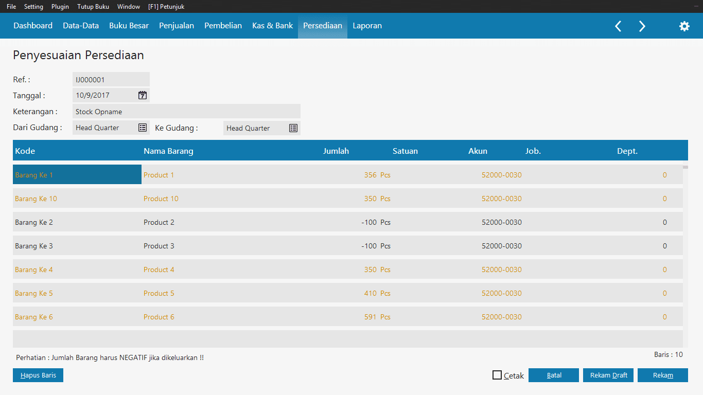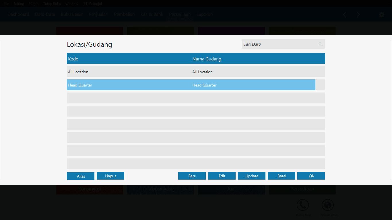 6. Misal, Pilih Gudang Head Quarter maka akan muncul tampilan seperti di bawah ini :
