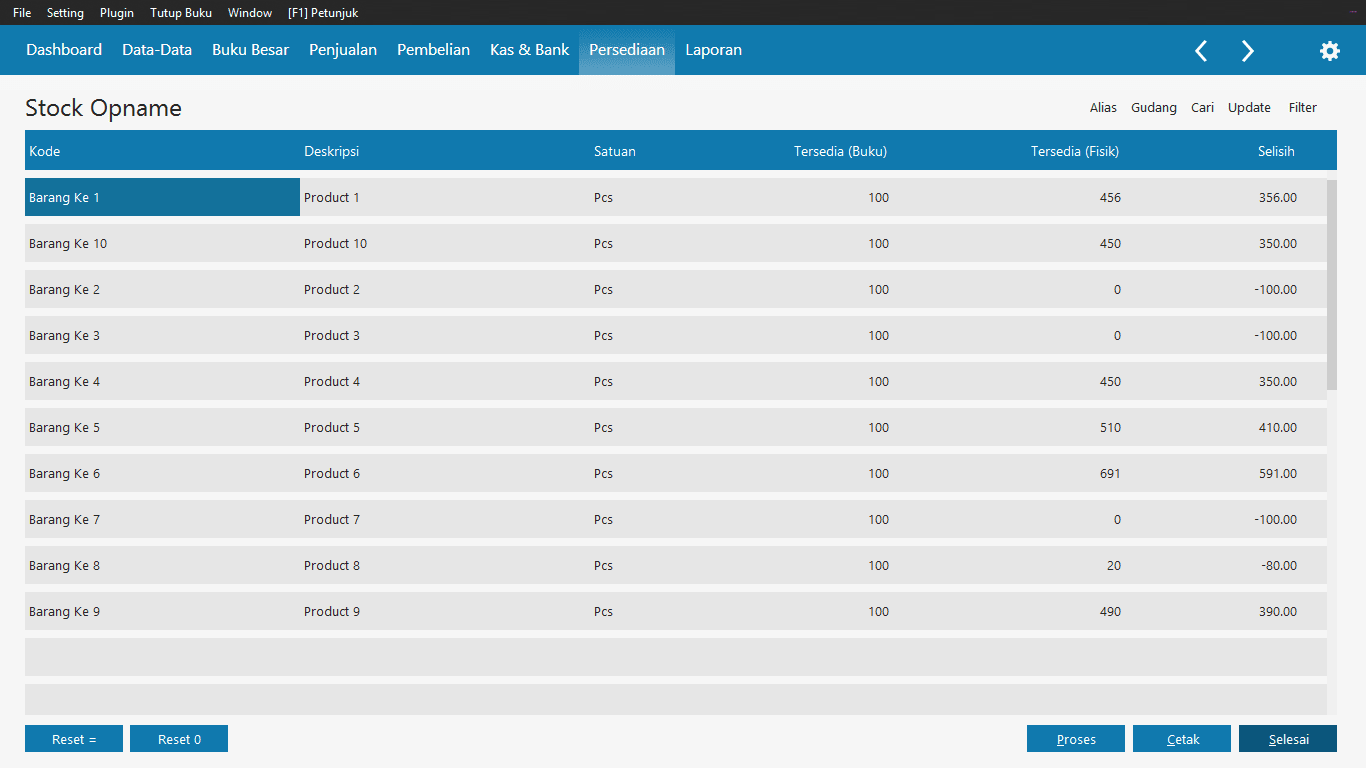 8. Klik Lanjutkan, maka tampilan akhir dari proses stock opname yang muncul seperti di bawah ini :