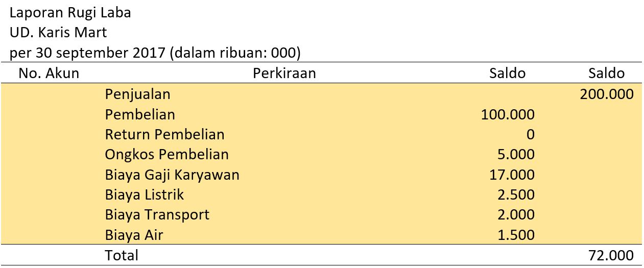 Untuk mempermudah pemahaman kita dalam pembuatan laporan. Berikut ini adalah Contoh Laporan Keuangan Perusahaan dagang: